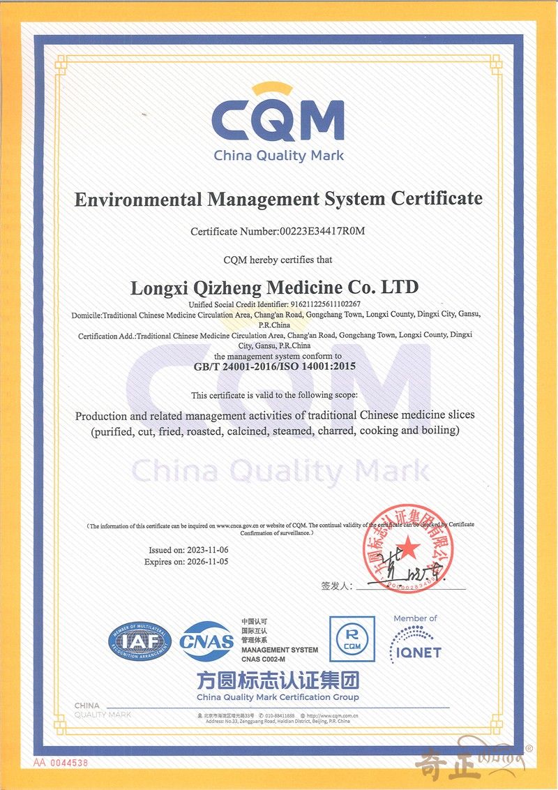 環(huán)境管理體系認證證書(shū)(英文)