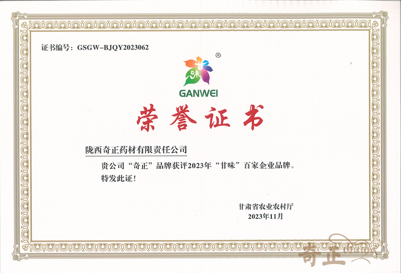 2023年”甘味“百家企業(yè)品牌證書(shū)