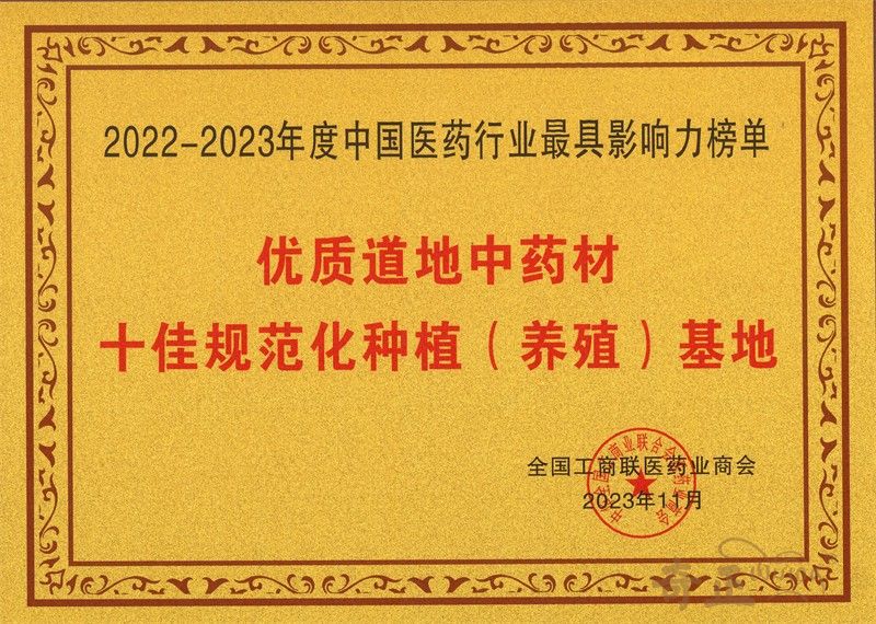 優(yōu)質(zhì)道地中藥材十佳規范化種植(養殖)基地